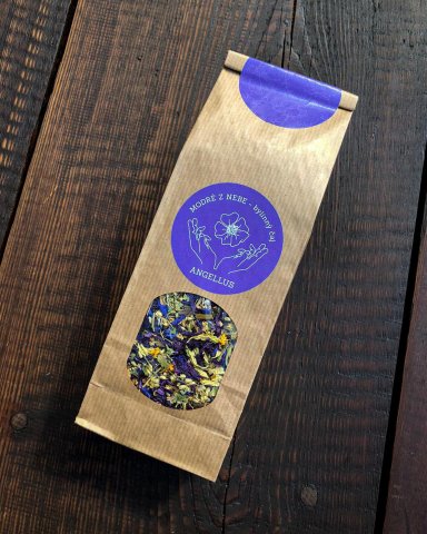 Bylinky modré jako nebe. Čaj mění po zalití postupně barvu od světle modré přes fialovou do finálního medového odstínu. Krásně voní a chutná sladce. Slazený světlým medem ( doporučujeme akáciový nebo lipový ) chutná nebesky.