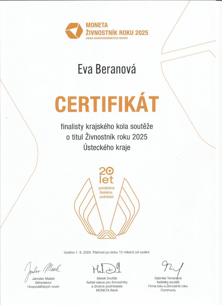 Identifikace správce: Eva Beranová, Blatenská 883/68, 43001 Chomutov, IČ: 63162431.