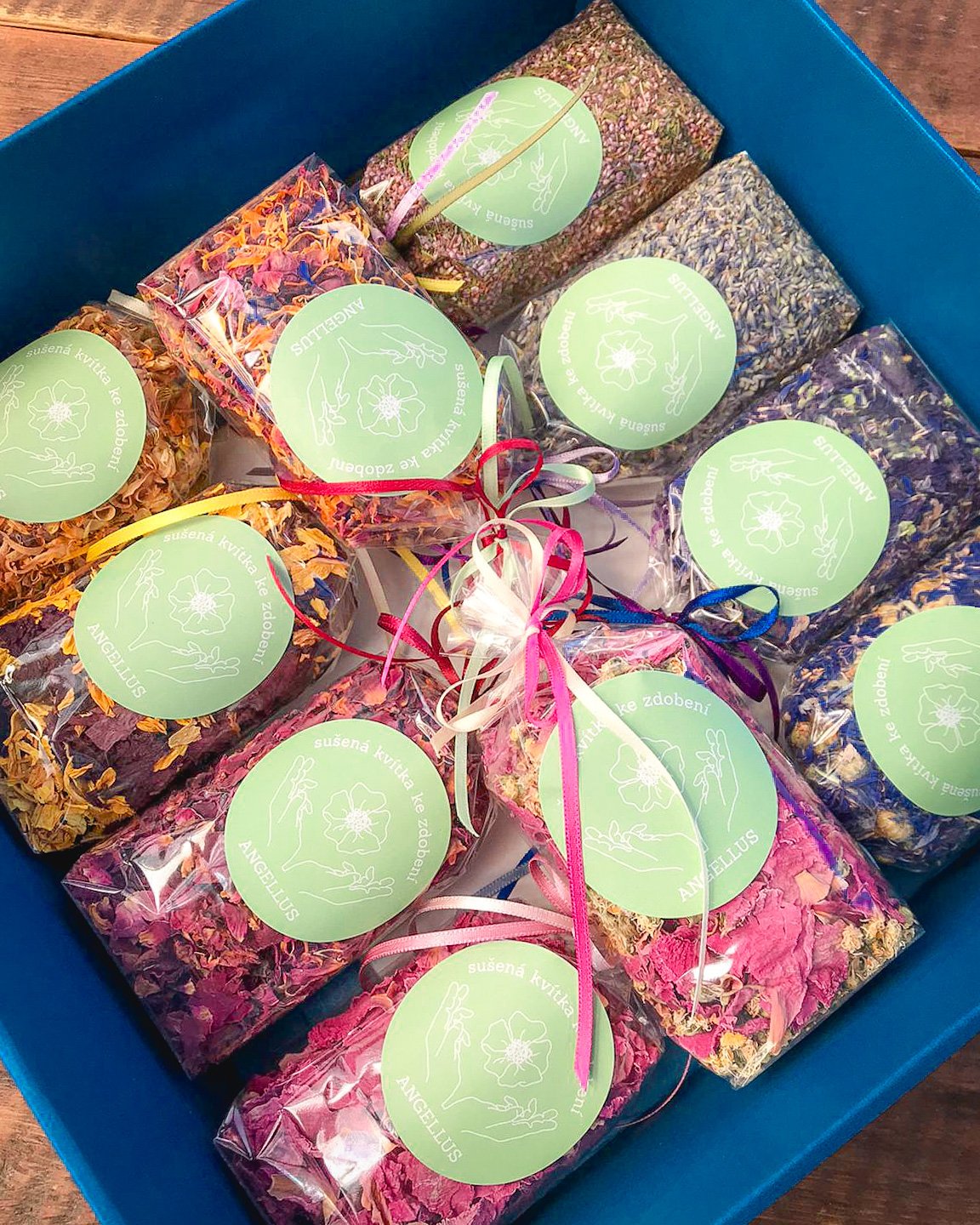 Dárková krabička 30x30cm - 10 druhů květového zdobení.