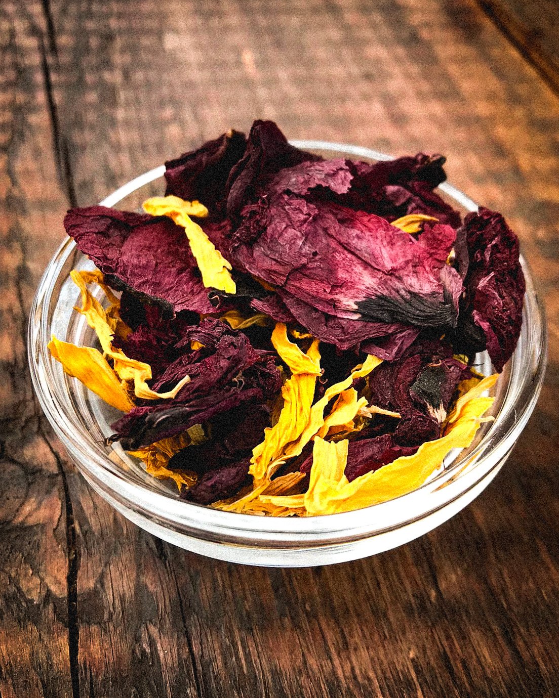 Složení: Vlčí mák okvětní lístky 70%, Slunečnice okvětní lístky 30%.